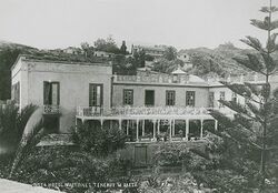 La sociedad decide arrendar una casa de estilo colonial de Antonia Dehesa Sanz, viuda de Francisco García Gutiérrez[4], situada en los Llanos de Martiánez, para instalar el primer sanatorium de Canarias en el que los turistas, aquejados por enfermedades, principalmente pulmonares, pudieran acudir para recuperarse. Nacía así, en septiembre de 1886, el ‘The Orotava Grand Hotel’[3] (futuro Hotel Martiánez), que supuso un gran impacto en la zona y en la isla por la creciente presencia de visitantes que conduce al establecimiento de una comunidad británica estable en Puerto de la Cruz, clave para el futuro desarrollo económico y social de la ciudad como primer destino turístico de Canarias.